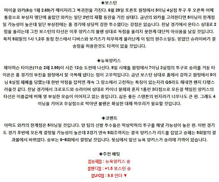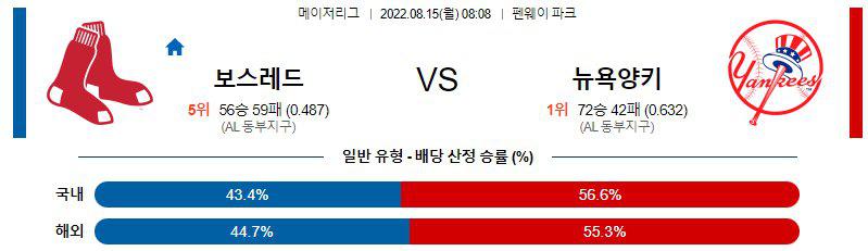 【MLB】 8월 15일 보스턴 vs 뉴욕양키스