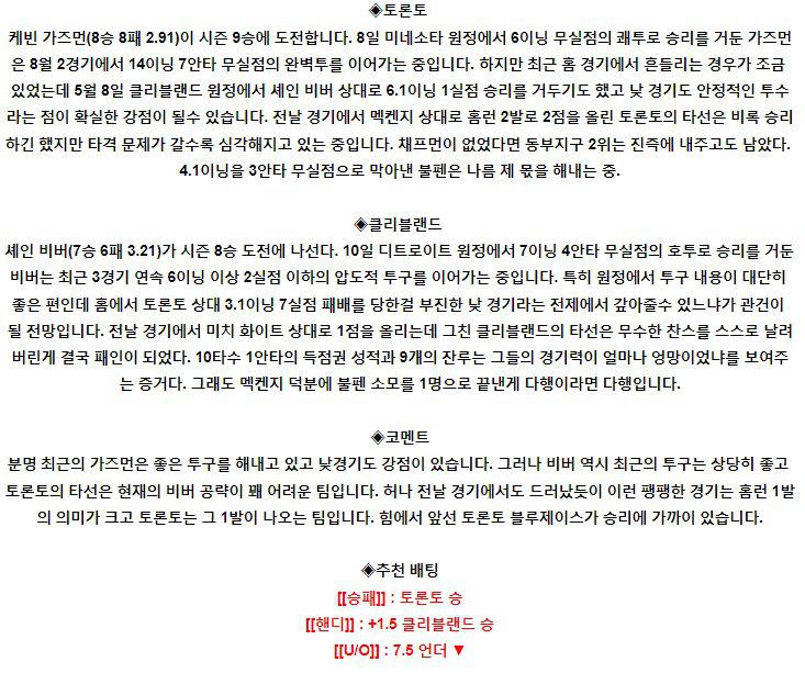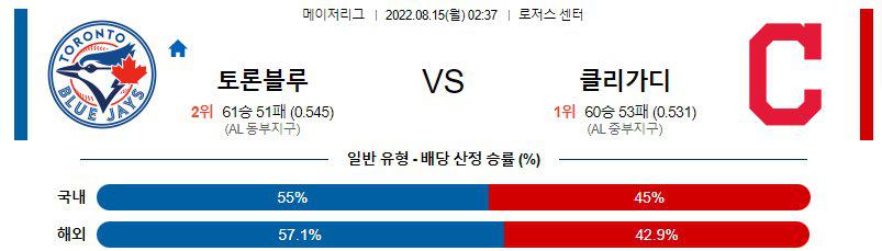 【MLB】 8월 15일 토론토 vs 클리브랜드