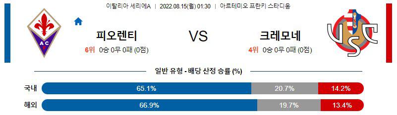 【세리에A】 8월15일 피오렌티나 vs 크레모네