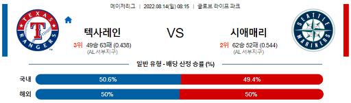 8월 14일 08:15 MLB 텍사스 : 시애틀