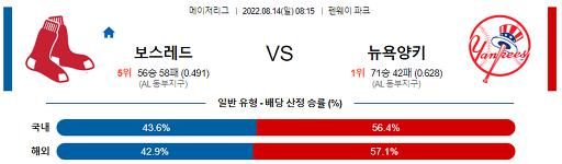 8월 14일 08:15 MLB 보스턴 : 뉴욕양키스