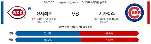 8월 14일 07:40 MLB 신시내티 : 시카고컵스