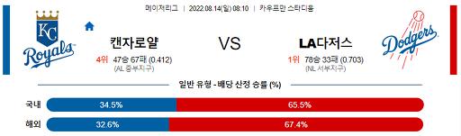 8월 14일 08:10 MLB 캔자스시티 : LA다저스