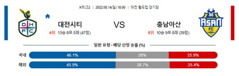 【K리그2】 8월14일 대전시티즌 vs 충남아산