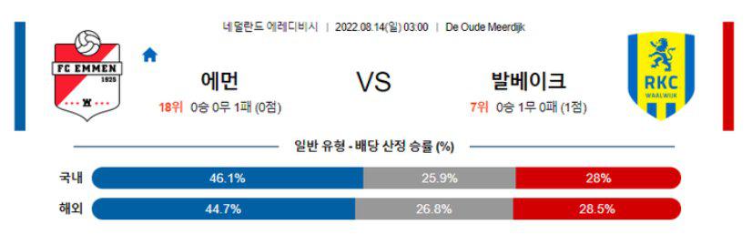 【에레디비시】 8월 14일 에먼 vs 발베이크