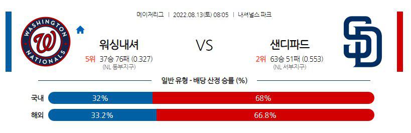 【MLB】 8월 13일 워싱턴 vs 샌디에이고