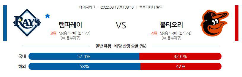 【MLB】 8월 13일 탬파베이 vs 볼티모어