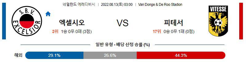【Eredevisie】 8월13일 엑셀시오르 vs 비테세