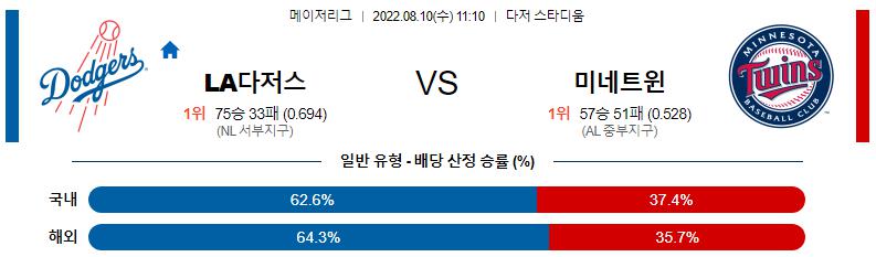 8월 10일 11:10 MLB LA다저스 : 미네소타 MLB분석