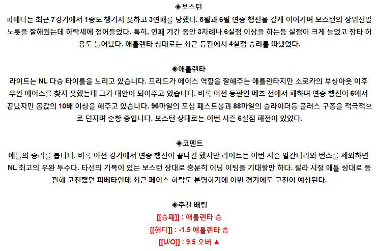 ◈샌디에이고 조 머스그로브(8승 5패 3.00)가 시즌 9승 도전에 나섭니다. 5일 콜로라도와의 홈경기에서 4.2이닝 6실점의 부진으로 패배를 당했던 머스그로브는 7월부터 투구 내용이 크게 흔들리고 있는 중입니다. 그나마의 특징이라면 당하는 팀에게 당하고 강한 팀에게 강하다는 점인데 금년 머스그로브는 샌프란시스코 상대로 무려 14이닝 5안타 무실점의 투구…