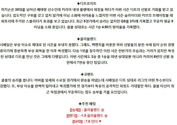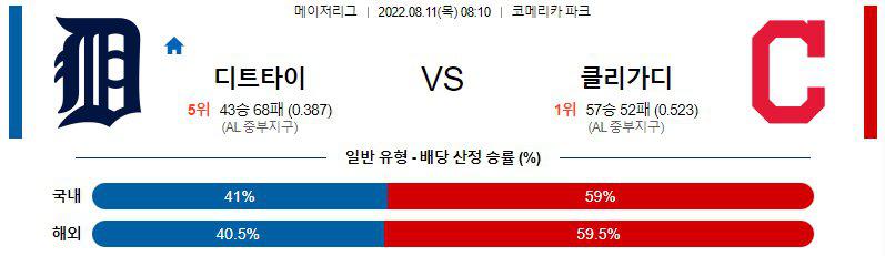 【MLB】 8월 11일 디트로이트 vs 클리브랜드