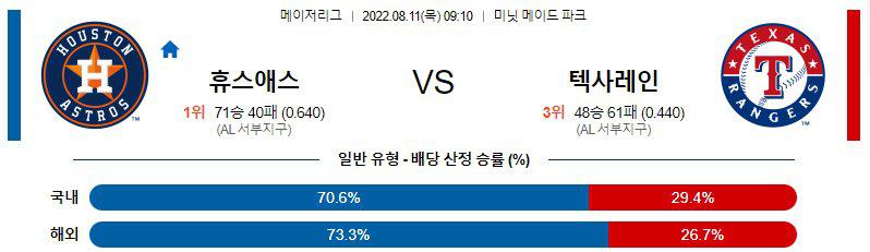 【MLB】 8월 11일 휴스턴 vs 텍사스