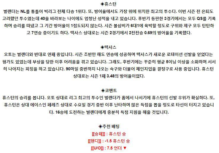 ◈LA다저스 훌리오 유리아스(11승 6패 2.57)가 시즌 12승에 도전합니다. 4일 샌프란시스코 원정에서 6이닝 7안타 무실점의 호투로 승리를 거둔 유리아스는 최근 4경기 연속 승리 포함 후반기에 19이닝 2실점이라는 압도적 투구가 이어지는 중입니다. 특히 최근 3번의 홈경기에서 18이닝 1실점으로 대단히 위력적인 투구가 이어진다는 점도 긍정적입니다. …