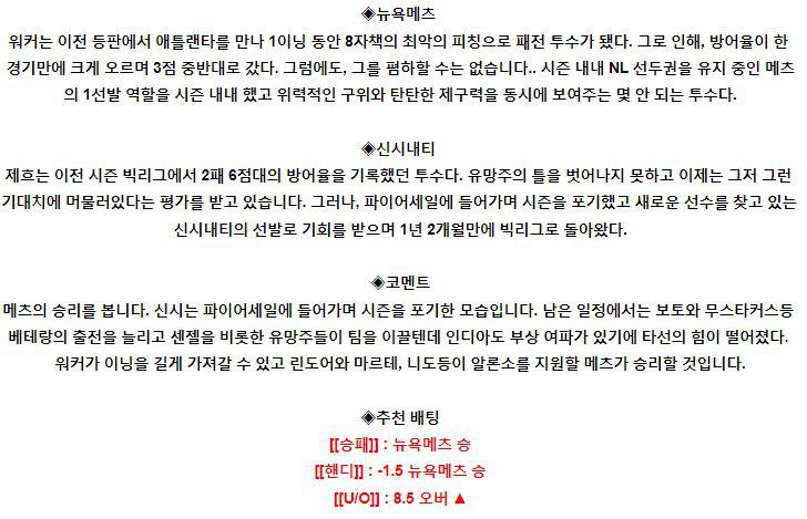 ◈샌디에이고 조 머스그로브(8승 5패 3.00)가 시즌 9승 도전에 나섭니다. 5일 콜로라도와의 홈경기에서 4.2이닝 6실점의 부진으로 패배를 당했던 머스그로브는 7월부터 투구 내용이 크게 흔들리고 있는 중입니다. 그나마의 특징이라면 당하는 팀에게 당하고 강한 팀에게 강하다는 점인데 금년 머스그로브는 샌프란시스코 상대로 무려 14이닝 5안타 무실점의 투구…