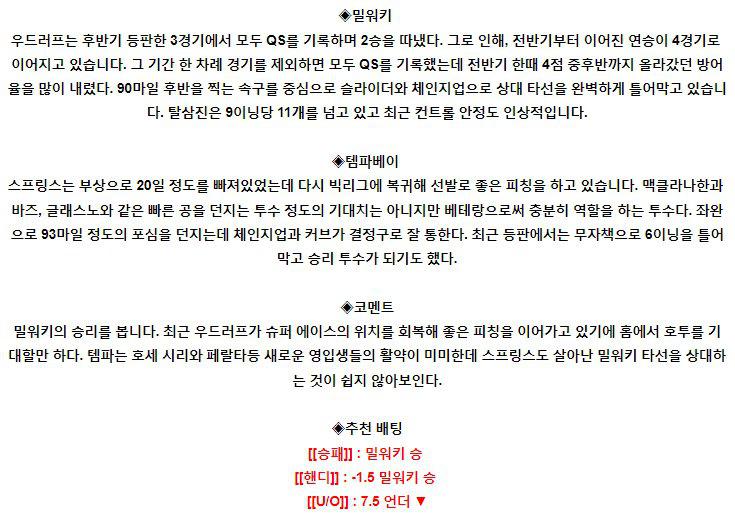 ◈샌디에이고 조 머스그로브(8승 5패 3.00)가 시즌 9승 도전에 나섭니다. 5일 콜로라도와의 홈경기에서 4.2이닝 6실점의 부진으로 패배를 당했던 머스그로브는 7월부터 투구 내용이 크게 흔들리고 있는 중입니다. 그나마의 특징이라면 당하는 팀에게 당하고 강한 팀에게 강하다는 점인데 금년 머스그로브는 샌프란시스코 상대로 무려 14이닝 5안타 무실점의 투구…