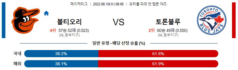 8월 10일 08:05 MLB 볼티모어 : 토론토 MLB분석