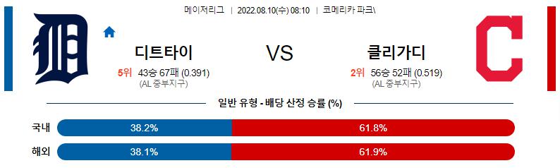 8월 10일 08:10 MLB 디트로이트 : 클리블랜드 MLB분석