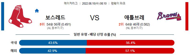 8월 10일 08:10 MLB 보스턴 : 애틀랜타 MLB분석
