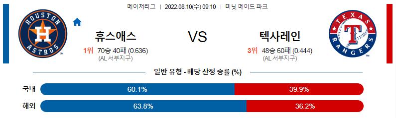 8월 10일 09:10 MLB 휴스턴 : 텍사스 MLB분석