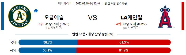 열람중 8월 10일 10:40 MLB 오클랜드 : LA에인절스 MLB분석 2022.08.10 506
