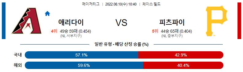 8월 10일 10:40 MLB 애리조나 : 피츠버그 MLB분석