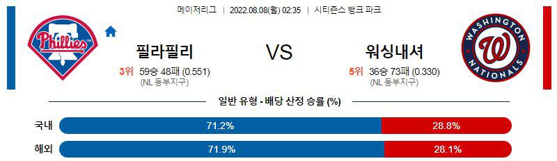 【MLB】 8월 8일 필라델피아 vs 워싱턴