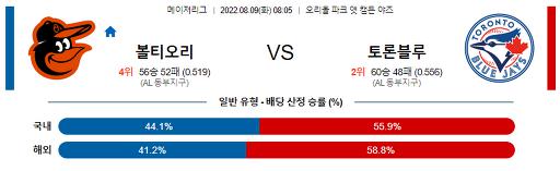 열람중 8월 9일 08:05 MLB 볼티모어 : 토론토 2022.08.08 507
