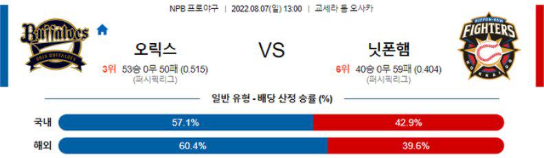 5938 [NPB] 8월6일 오릭스 vs 니혼햄 2022.08.06 534