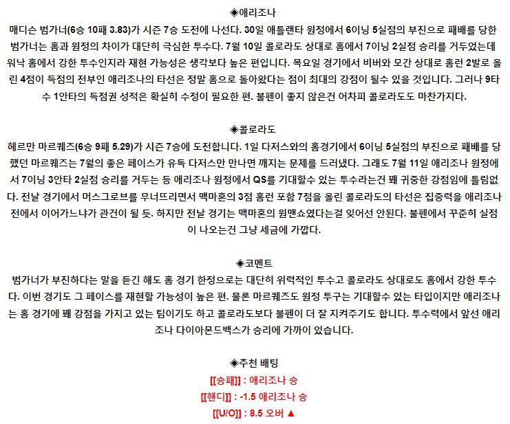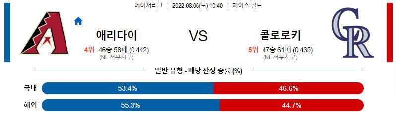 【MLB】 8월 6일 애리조나 vs 콜로라도