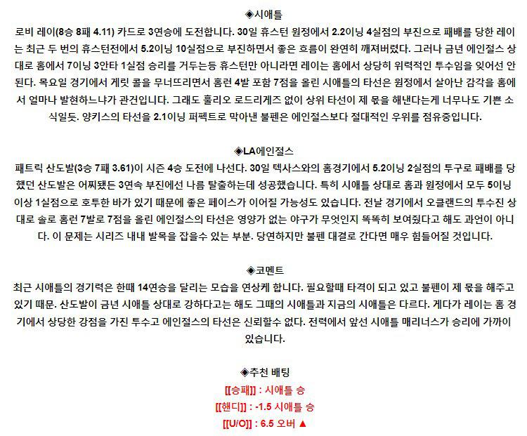 【MLB】 8월 6일 시애틀 vs LA에인절스
