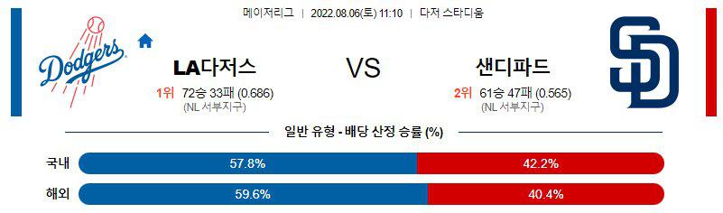 【MLB】 8월 6일 LA다저스 vs 샌디에이고