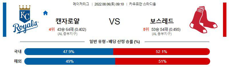 【MLB】 8월 6일 캔자스시티 vs 보스턴