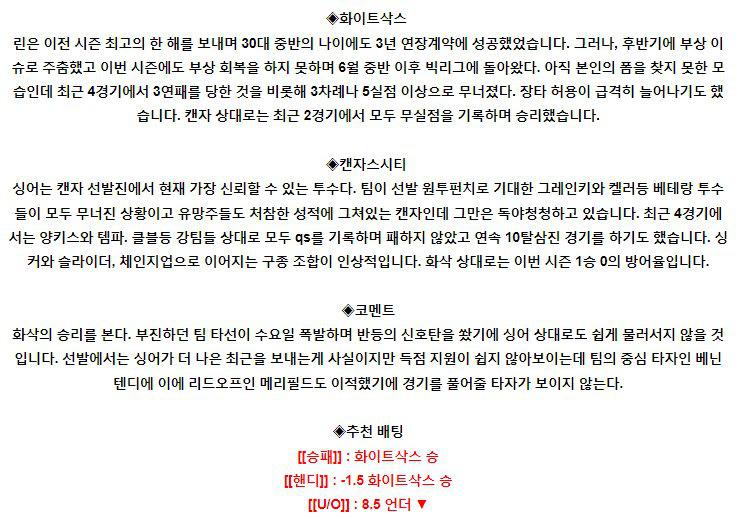 【MLB】 8월 4일 시카고화이트 vs 캔자스시티