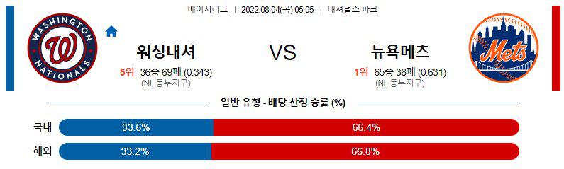 【MLB】 8월 4일 워싱턴 vs 뉴욕메츠
