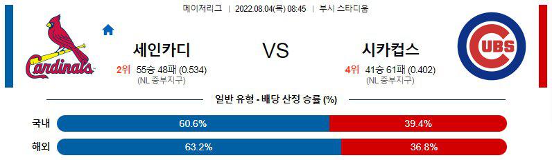 【MLB】 8월 4일 세인트루이스 vs 시카고컵스