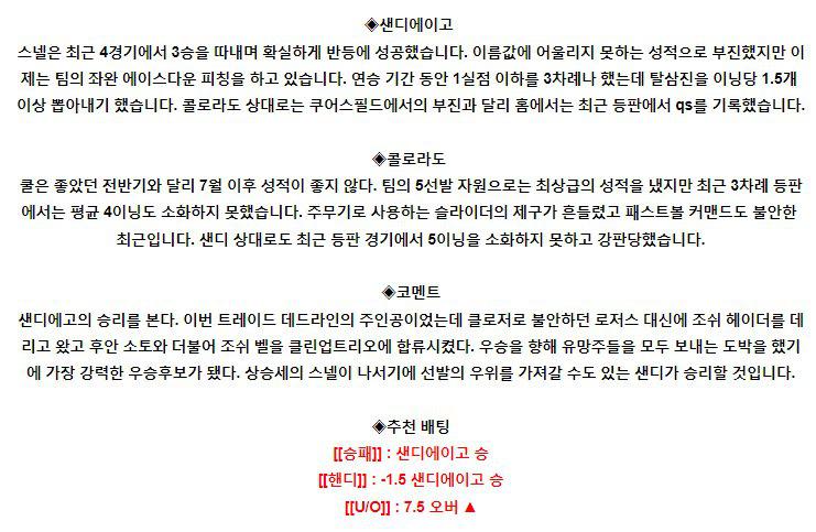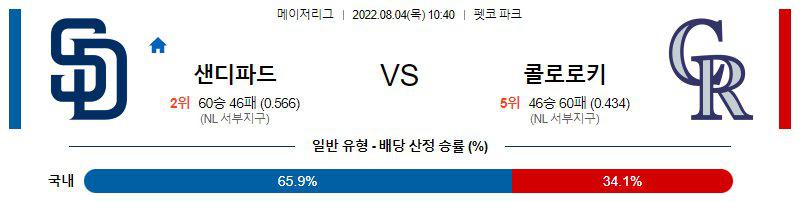 【MLB】 8월 4일 샌디에고 vs 콜로라도