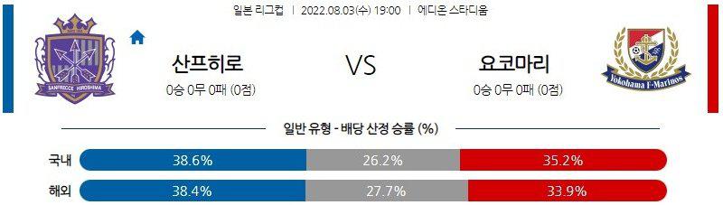 【J리그】 8월 3일 산프레체 히로시마 vs 요코하마 F 마리노스