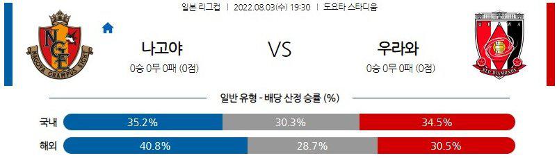 【J리그】 8월 3일 나고야 그램퍼스 vs 우라와 레드