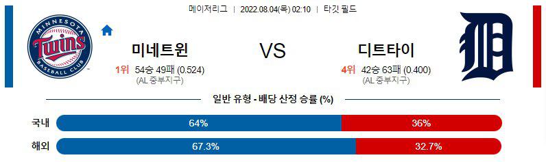 【MLB】 8월 4일 미네소타 vs 디트로이트