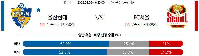 【K리그1】 8월 2일 울산 현대 vs FC 서울