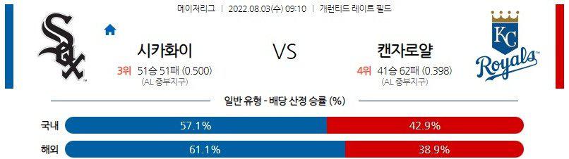 【MLB】 8월 3일 시카고 화이트삭스 vs 캔자스시티