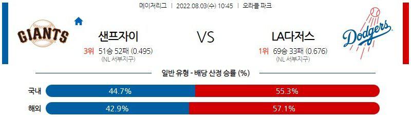 【MLB】 8월 3일 샌프란시스코 vs LA 다저스