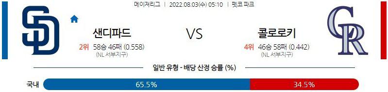 【MLB】 8월 3일 샌디에이고 vs 콜로라도