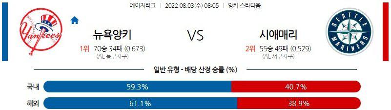 【MLB】 8월 3일 뉴욕 양키스 vs 시애틀