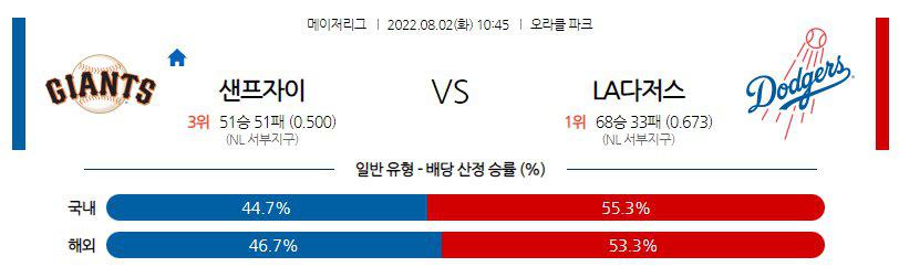 【MLB】 8월 2일 샌프란시스코 vs LA다저스