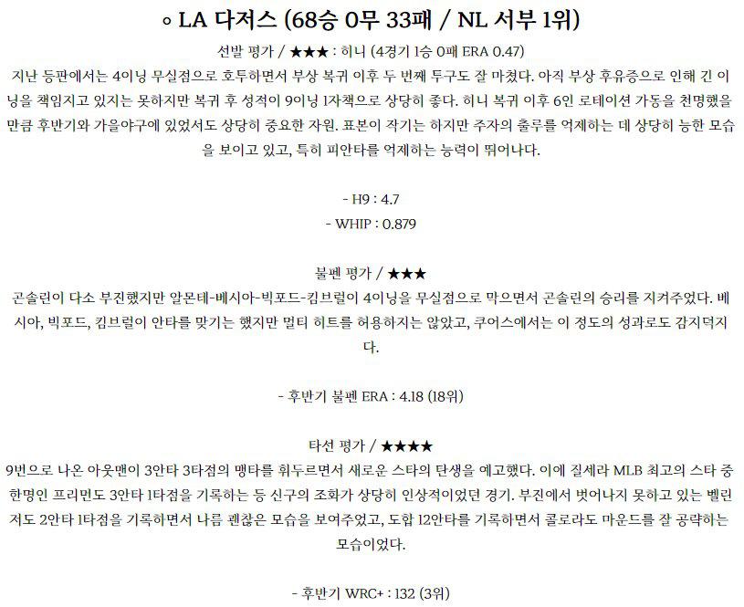 키움 히어로즈 (61승 4무 28패 / 리그 2위) 선발 평가 / ★★★ : 정찬헌 (14경기 5승 4패 ERA 4.48) 순서 상으로는 한현희가 등판하기로 되어 있었으나, 우천 취소로 인해 정찬헌으로 선발을 바꾸었다. 지난 등판에서는 5이닝 2실점으로 1인분 역할은 해주었지만 내용은 상당히 좋지 못했다. 4개의 볼넷을 내주면서 커맨드도 안정적이지 않았…