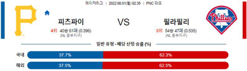 【MLB】 8월 1일 피츠버그 vs 필라델피아