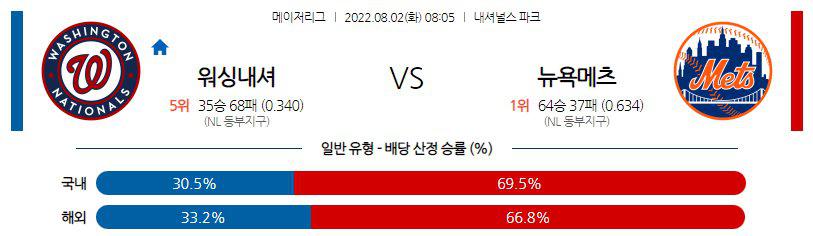 【MLB】 8월 2일 워싱턴 vs 뉴욕메츠