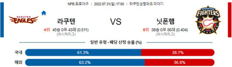 [NPB] 7월31일 라쿠텐 vs 니혼햄