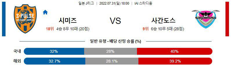 【J리그】 7월31일 시미즈S펄스 vs 사간도스